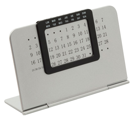 Calendario eterno plástico plateado, para todos los meses y años. Con ventana semanal móvil.