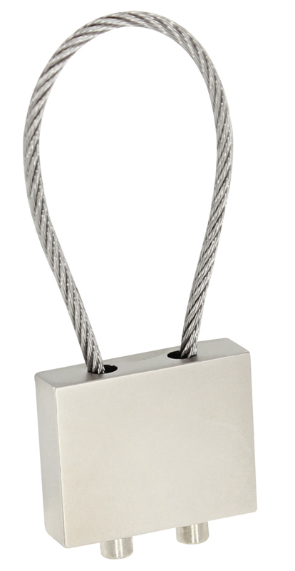 Llavero Metálico modelo Candado. Presentación en estuche laminado negro con cuna aterciopelada.