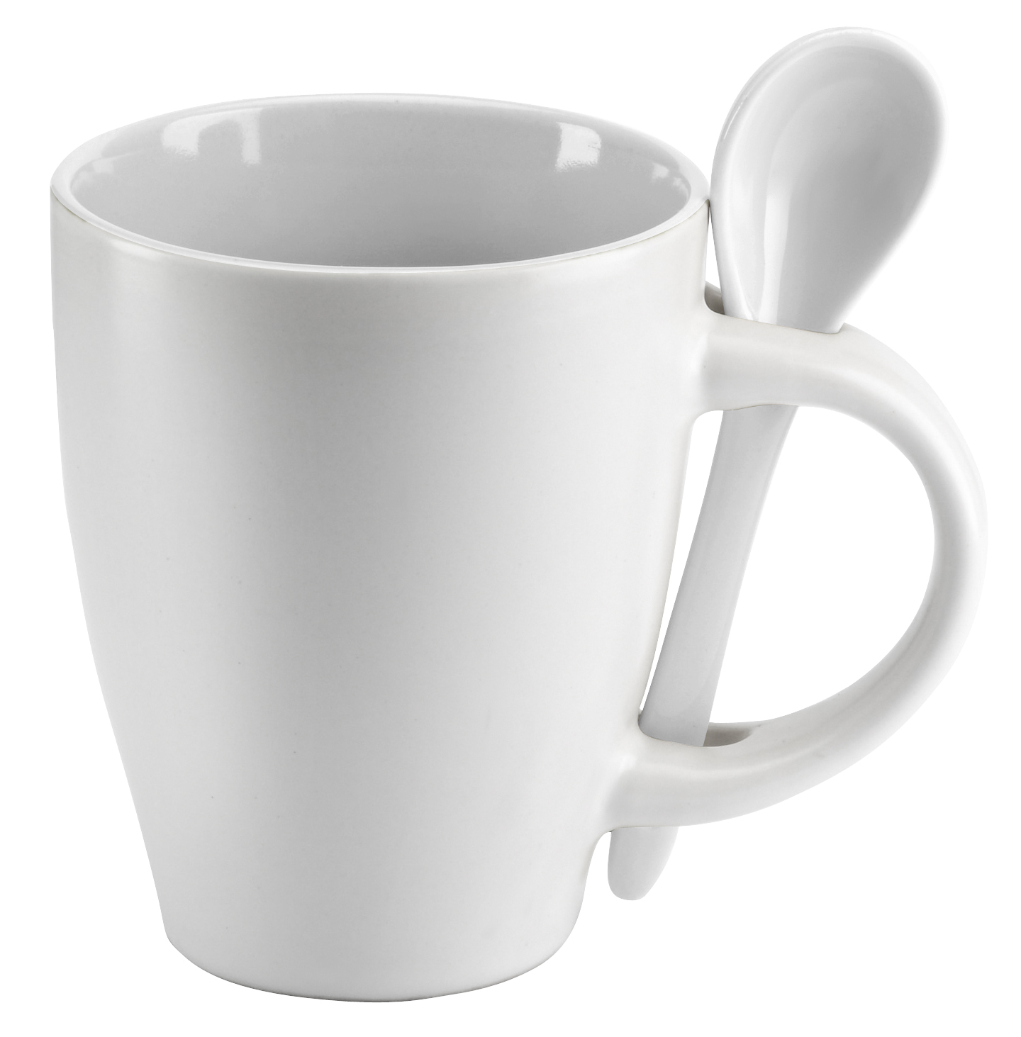 Tazón Cerámico Blanco opaco con interior y cuchara de color. Presentación en caja de cartón blanco.